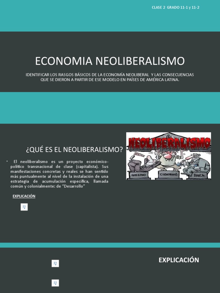 We are a sharing community. El neoliberalismo es un modelo económico que se enmarca dentro de las doctrinas del liberalismo económico, a su vez dentro del sistema capitalista. Neoliberalismo económico méxicano arely pacheco. Texto conceitua a doutrina do liberalismo econômico, qual é a sua origem e história, como funcionara um estado com economia liberal, entre outras infrmações. Neoliberalismo ✓ te explicamos qué es el neoliberalismo y cuáles son sus características además, las ventajas y desventajas que presenta esta corriente.