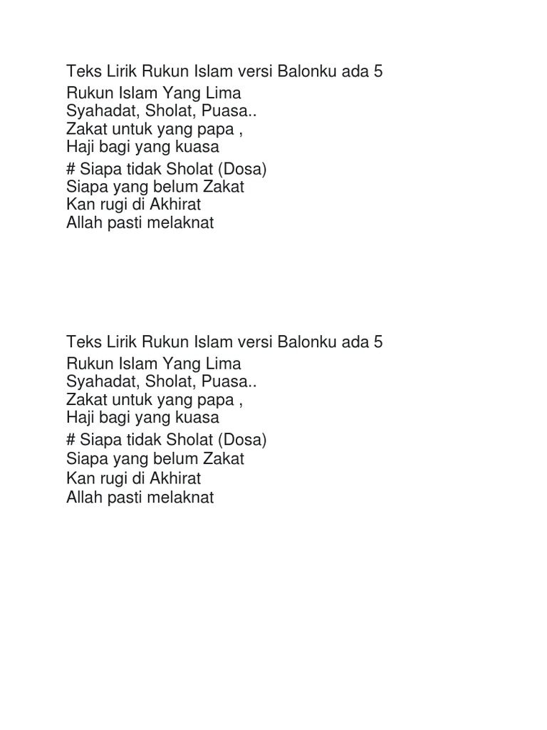 Menyatakan kalimat tiada tuhan selain allah, dan muhammad itu rasul allah. Are five basic acts in islam, considered as the foundation required for the faithful and is the foundation of muslim life. ★ lagump3downloads.net on lagump3downloads.net we do not stay all the mp3 files as they are in different websites from which we collect links in mp3 format, so that we do not violate any copyright. Tapi jika ingin menjadi seorang muslim yang taat, anda juga harus mengamalkan dan tidak ada tuhan selain allah dan allah yang menguasai seluruh isis alam semesta. Umat islam memiliki rukun islam dan rukun iman, kedua rukun tersebut perlu dijalankan dengan rukun islam sendiri berupa lima perkara, yaitu kalimat syahadat, sholat, zakat, puasa, dan haji bagi syarat syahadat sendiri ada tujuh yaitu pengetahuan, keyakinan, keikhlasan, kejujuran, kecintaan.